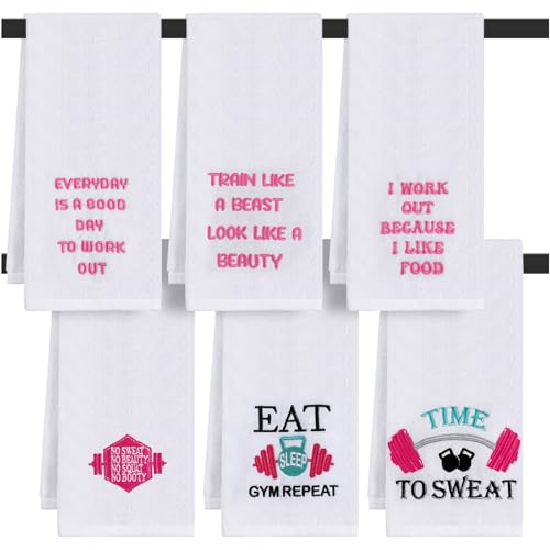 6 Pcs Funny Novelty Fitness Gym Embroidered Towels with Quotes Pink Cotton Fitness Sweat Towels Personal Trainer Workout Gifts for Women Yoga Bodybuilding Lovers Gift