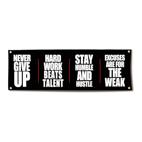 Motivational Gym Flag Banner “Never Give Up Hard Work Beats Talent” Home Gym Decor 72×24 Inches for Garage Gym Office Wall Decor