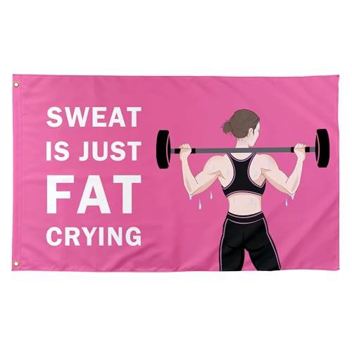 Sweat Is Just Fat Crying Inspirational Motivational Flags Cool Gym Flags Banner 3X5 Ft Fitness Room Girls Bedroom College Dorm Guys Indoor Inside Wall Fun Tapestry Hangings Pinky