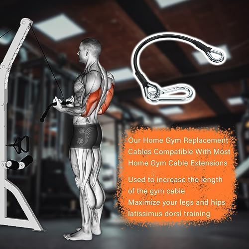 Home Gym Replacement Cables is compatible with most home gym cable extensions, replacing the Bowflex Extension to add approximately 10 inches of cable length.