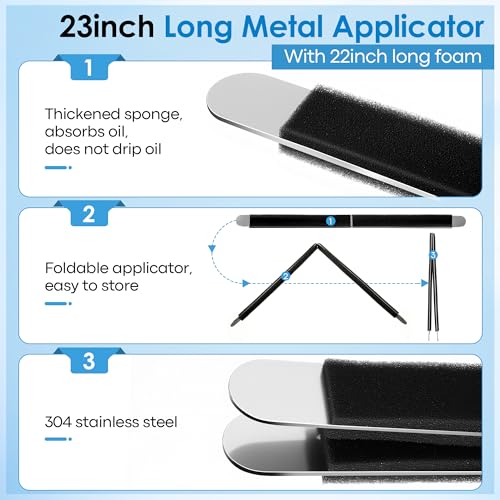 24inch Long Foldable Metal Applicator: After our research, the general width of a treadmill is 21 inches, our applicator in the length of 24inch, with 21.7inch foam, which is 3 inch longer then general treadmill, so it is easier to grip to slide back and forth under the belt. Besides, metal based applicators are more sturdy and less prone to bending or breaking, foldable feature also convenient to store