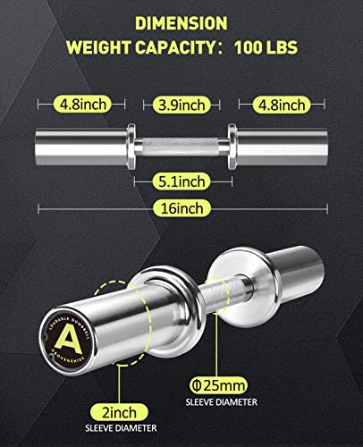 16″ Olympic Dumbbell Handles, Solid Steel Loadable Weight Bars for 2-Inch Plates, Adjustable Home Gym Strength Training Equipment (Includes 4 Spring Collars)