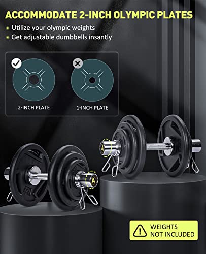 Fits 2-Inch Olympic Plates: Maximize your existing equipment! These 50mm diameter sleeves are fully compatible with standard 2-inch Olympic weight plates. Easily create your own adjustable dumbbells on demand, saving you the massive expense and storage space of buying a full rack of fixed dumbbells.