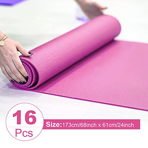 16 Pack 3 mm Thick Yoga Mat Bulk, Exercise Workout Non Slip Fitness Pad for Women Gym Home Yoga Pilates, Reliable Sturdy Material and Easy to Clean (Rose Red)