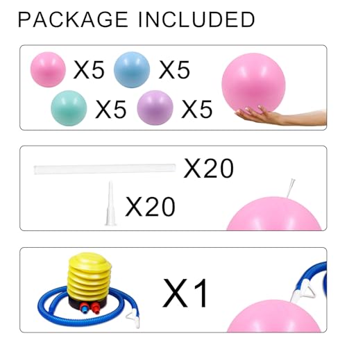 20-Pack Mini Yoga Balls + Complete Inflation Kit:Get 20 premium 9 inch exercise balls (mini yoga ball design) + 20 inflation straws, 20 air plugs, 1 inflation pump—everything you need for instant workouts, replacements, or sharing with friends/family.