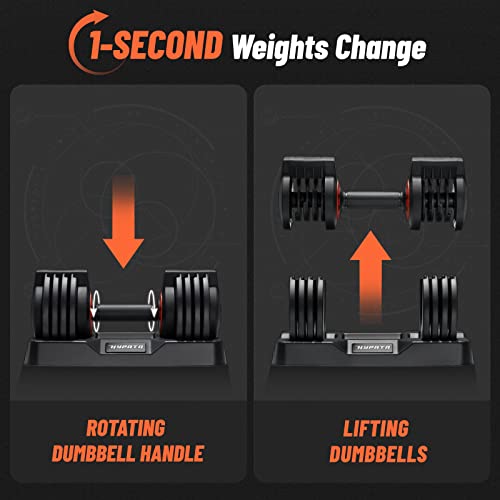 【Super High Quality】These adjustable dumbbells made from solid and rust-free material has long-lasting protection. The dumbbell’s tray is made of PP material, fits the dumbbell without shaking, stable and odorless. Durable handle combine with aluminum alloy material and anti-slip texture, which would not rusty and provide more safety.