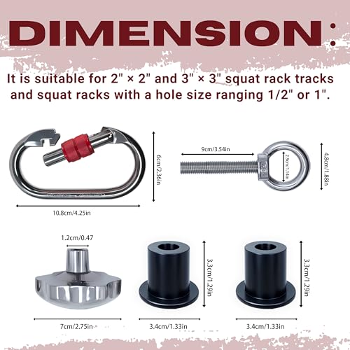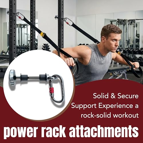 2PCS Stainless Steel Power Rack Attachments – Universal Fit for 2×2 & 3×3 Frames (1/2″ & 1″ Holes) – Zero-Wobble Squat Rack Accessories with Ergonomic Star Knob & Screw-Lock Carabiner