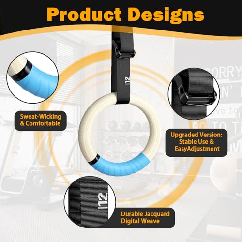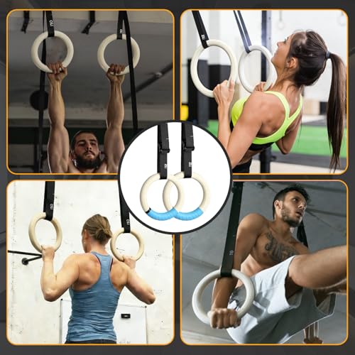 32mm Wooden Gymnastic Rings with Quick-Adjust Numbered Straps for Enhanced Workout Control, Designed for Strength Training, Home Gym, Calisthenics & Travel Fitness