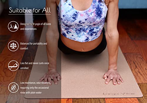 Elevate your practice with Larga Vitae’s organic cork and natural rubber yoga mat.