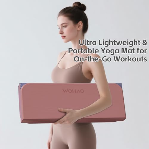 【Plush 1/2-Inch (12mm) Thickness – Cloud-Like Comfort】–Never sacrifice cushioning for portability. Unfold a spacious 70″x24″ workout area with a generous half-inch (12mm) of padding—that’s 100% thicker than standard 1/4-inch mats! This plush support provides exceptional comfort and unparalleled protection for your knees, wrists, and joints during yoga, Pilates, and floor exercises.