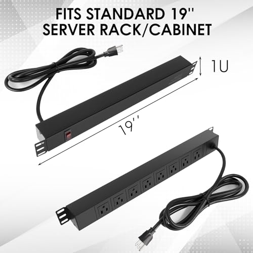RACK MOUNTABLE: This 1U Rackmount PDU power strip fits 19″ standard server racks and cabinets, featuring a 1U horizontal rack mount form factor that ensures compatibility with all 19″ server racks. The PDU surge protector is versatile, suitable for plenty of installation applications including rack enclosures, workshops, offices, cabinets, work benches, wall mounts, under counters, and more, enhancing the neatness and organization of your workstation. Its compact design allows for an effective use of space within standard 19-inch racks.