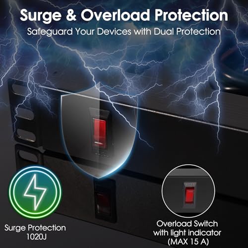 SURGE PROTECTION: This 125V/15A Rackmount surge protection suppressor is an indispensable device for data centers, network closets, and VoIP Phone systems, offering the most important power protection to sensitive equipment. This is a rack mountable 8-outlet (125V) power strip equipped with both a built-in overload switch and reset switch, ensuring reliable performance to your networking equipment. Additionally, the built-in 1020J surge protection suppressor feature safeguards your valuable assets against potential damage from power spikes and surges, promoting their reliability and longevity.