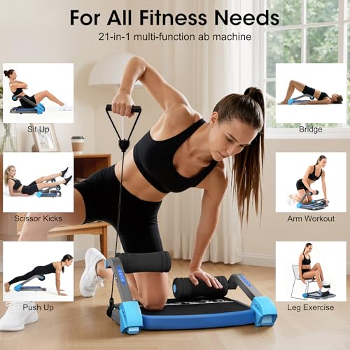 【21-in-1 Full-Body Workout】Go beyond basic sit-ups with this versatile machine. It supports crunches, push-ups, glute bridges, scissor kicks, arm curls, and more, targeting abs, arms, legs, and shoulders for a complete at-home workout without extra gym clutter.