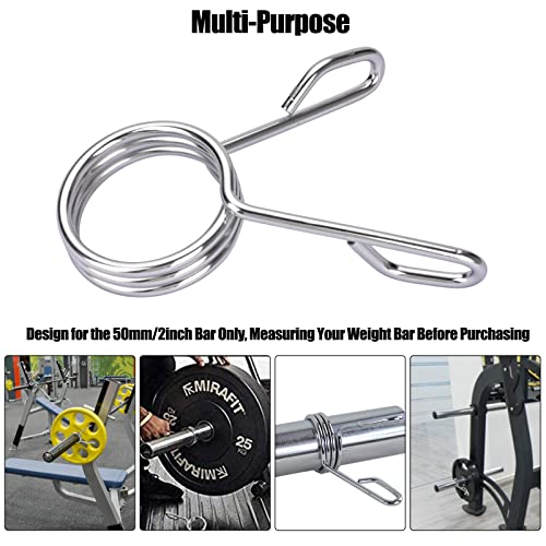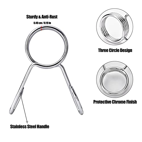 Heavy Duty: Made of chrome-plated steel designed with 3 circle springs, the weight clips can hold weight plates in place to prevent sliding off or moving around from the barbell.