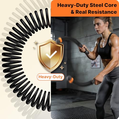 【Ergonomic Anti-Slip Handles】Our ropeless battle ropes feature ergonomically designed, sweat-resistant, and non-slip handles for superior comfort and stability during intense HIIT, battle rope workouts, and long training sessions. Reduce hand fatigue, enhance control, and ensure safe, effective training for men and women at home or in the gym