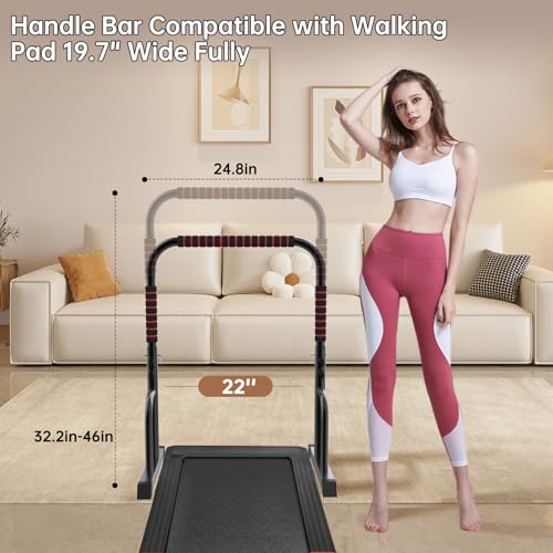 Adjustable Walking Pad Handle only, 19.7 inch Wide, 46 inch Max Height, Black/Red