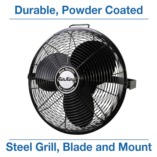Air King 18-Inch 1/6 HP Industrial Grade High Velocity Multi Mount Fan with 3-Speeds, Pivoting Fan Head, Durable Powder-Coated Steel Blades and Guards, for Industrial & Commercial Spaces, 9318, Black