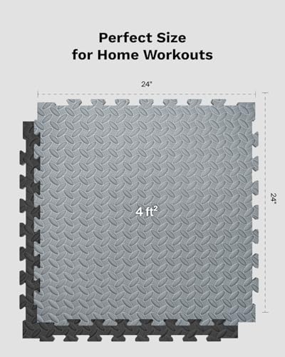 AIRHOP Upgraded 0.79″ Extra Thick 48 Sq Ft High-Density Eva Foam Exercise Gym Mats, 12 Pcs Large Interlocking Puzzle Floor Tiles (24″x24″) for Home Gym, Black&Gray