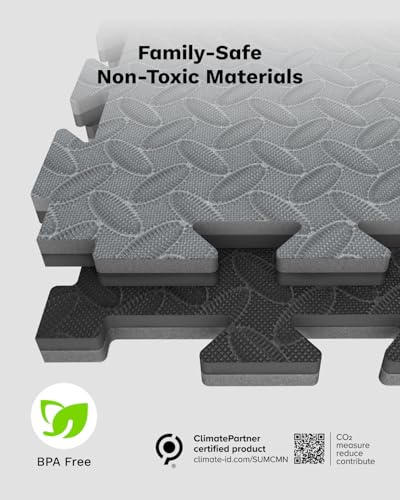 Easy Assembly and Disassembly: The large interlocking puzzle design makes assembly easy. Each tile measures 24″ x 24″ x 0.79″, and a set of 12 tiles covers 48 square feet (6x8FT). BPA-free, non-toxic, and phthalate-free, ensuring safe use.