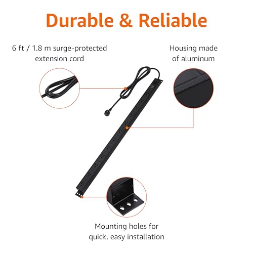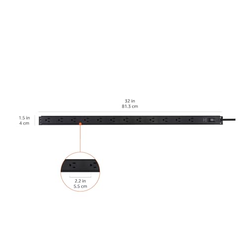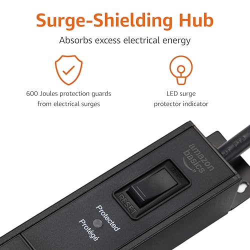 Amazon Basics Surge Protector Power Strip, 12-Outlet, Heavy Duty, Metal, 600 Joules, 6ft Extension Cord, Wide Spaced, Mountable, Black