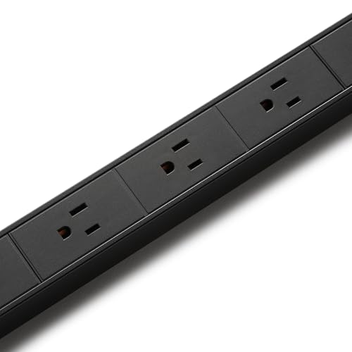 12-outlet, 600 joule power strip surge protector in durable aluminum housing with mounting holes for speedy, simple installation