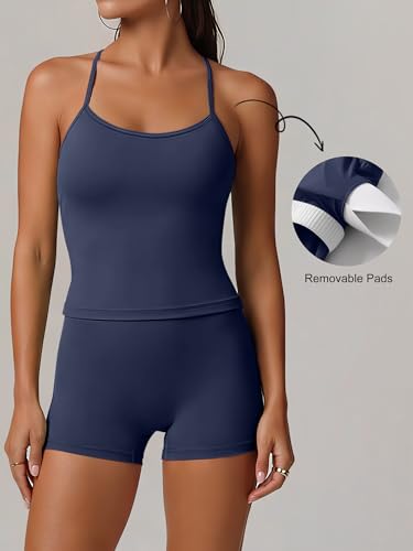 ANRABESS Women Workout Sets Build in Bra 2 Piece Outfits Tank Tops Tummy Control Shorts Yoga Gym Active Wear Clothing Set