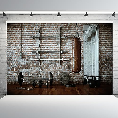 AOFOTO 10x8ft Gym Dumbbell Backdrop Indoor Sports Fitness Room Photography Background Muscle Training Wellness Physique Physical Exercise Sandbag Photo Studio Props Adult Artistic Portrait Wallpaper