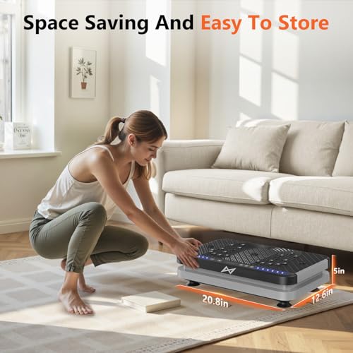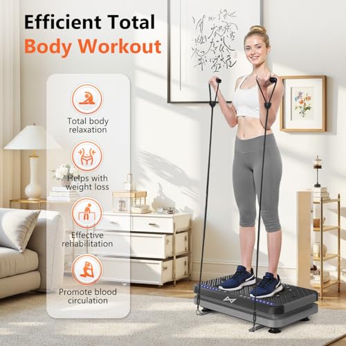 ✅RICH FUNCTIONAL & HIGH EFFICIENT& REMOTE CONTROL: Adjustable vibration speed (1 to 120), with 2 resistance workout bands, can exercise upper body and lower body at the same time. Offering variety of exercise modes, allow you to try different vibration exercises, With this workout machine, you can have your routine exercise done in only 10 minutes everyday. What you’ll get is a better shape and enhanced metabolism, increased bone mineral density, relieve and reduce stress levels.