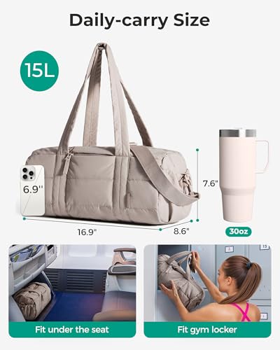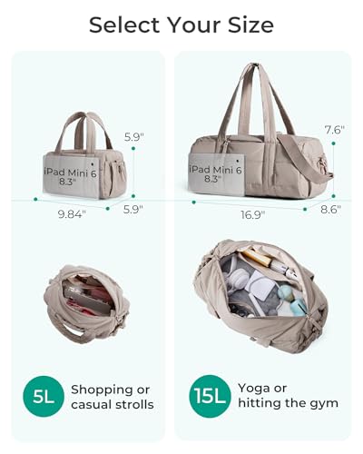 BAGSMART Reiki Gym Bag for Women, Mini/Medium Crossbody Bags for Women, 5L Dance Bag with Detachable Strap, 15L Yoga Mate Bag with Wet & Dry Pocket, Medium/Sand Brown