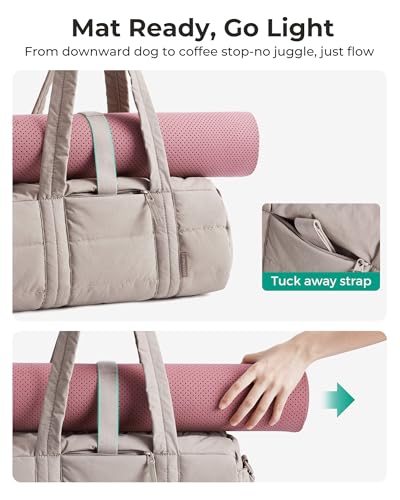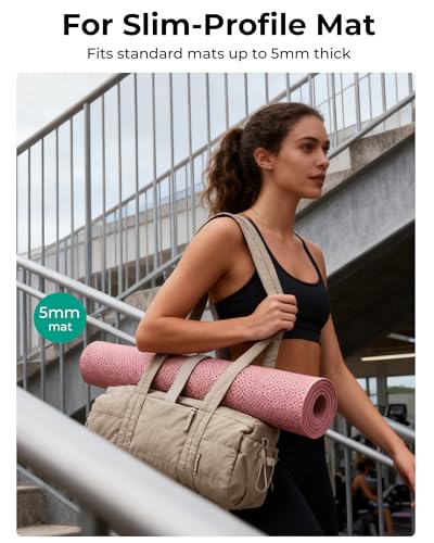 Yoga-Class Ready: No more awkwardly carrying your yoga mat! The sleek roll-top design features a built-in elastic band to securely hold standard mats (up to 1.5” thick). Arrive at class hands-free and stylish, no separate mat carrier needed