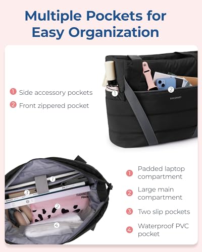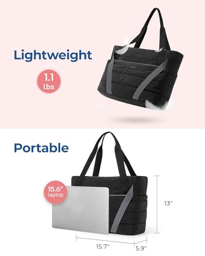 BAGSMART Tote Bag for Women with Zipper and Yoga Mat Straps Quilted Gym Tote for Travel, Work, Sport