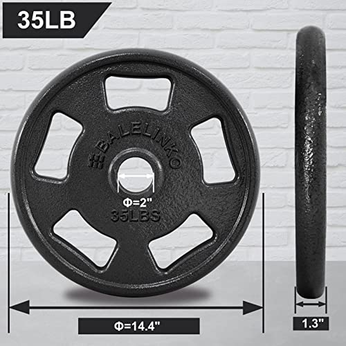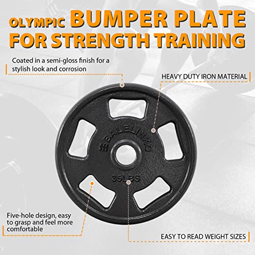 Balelinko Cast Iron 2-Inch Olympic Grip Plate Weight Plate for Strength Training, Weightlifting and Crossfit in Single, 35LB, Black