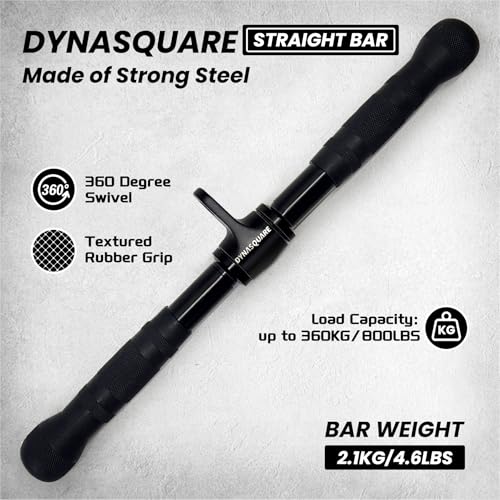 ✅Black Rotating Pull Down Bar: 18-inch length and 1-inch diameter, 360-degree swivel with electrophoresis coating and textured handles to prevent from corrosion, rust and endure ,Weight Capacity: Up to 800 lbs.Ideal for performing pull downs,triceps press downs, upright rows,straight bar curls, seated rows, etc.