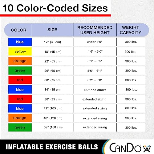 Inflatable Exercise Ball – The CanDo Inflatable Exercise Ball is ideal for home and gym workouts, rehab and birthing classes. It’s also a great alternative for office or classroom seating. Improve coordination and balance and practice active sitting.