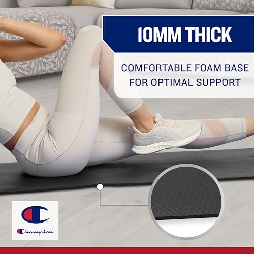 Champion 10mm Exercise Mat, Cushioned Non-Slip Workout Mat with Textured Base for Yoga, Pilates, Stretching & Floor-Based Training, Lightweight NBR Material, Includes Carry-On Strap