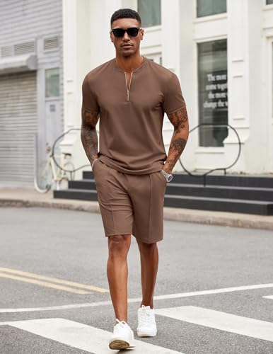 COOFANDY Men’s 2 Pieces Outfits Casual Quarter Zip Polo T Shirt and Shorts Set Athletic Jogging Summer Tracksuit