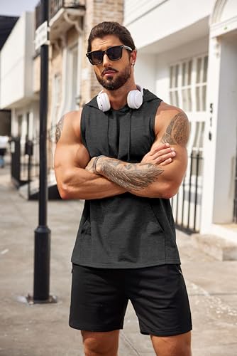 COOFANDY Men’s Workout Hooded Tank Tops Bodybuilding Muscle Cut Off T Shirt Sleeveless Gym Hoodies