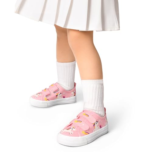 DREAM PAIRS Kid Toddler Sneakers Boys Girls Canvas with Cartoon Dual Hook and Loops for School Walking