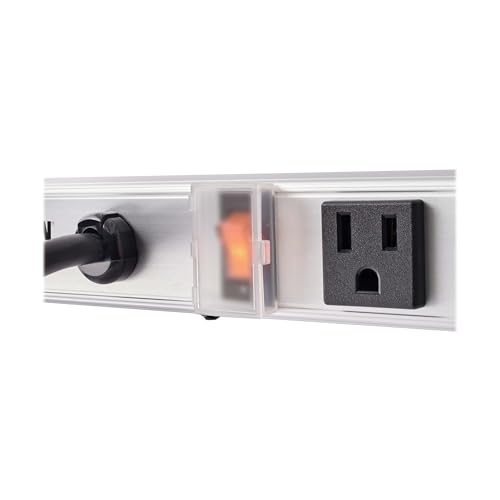 LONG POWER STRIP: Features 12 outlets, a 15ft long extension cord, and a 20A circuit breaker for high-amp devices like power tools. The 36in long metal power strip spaces outlets 2.64 inches apart center to center, allowing space for bulky transformers