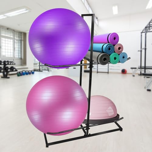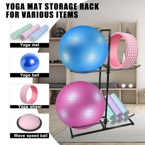 COMPREHENSIVE STORAGE SOLUTION: The stability ball holder and gym ball storage rack have been carefully designed to provide safe and convenient storage for stability balls, yoga balls, home yoga mats and gym balls