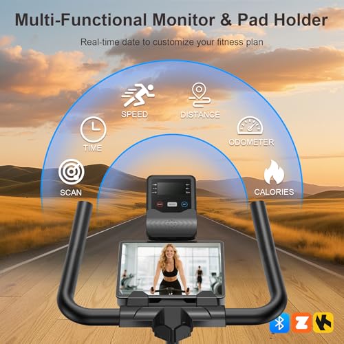 Exercise Bike for Home – 350LB Indoor Cycling Bike, Silent Stationary Spin Bike with App Sync, Adjustable Seat, LCD Monitor, Smooth & Quiet for Cardio Workout