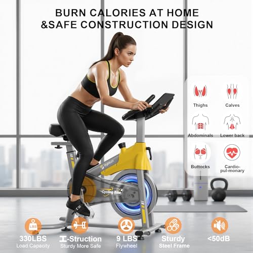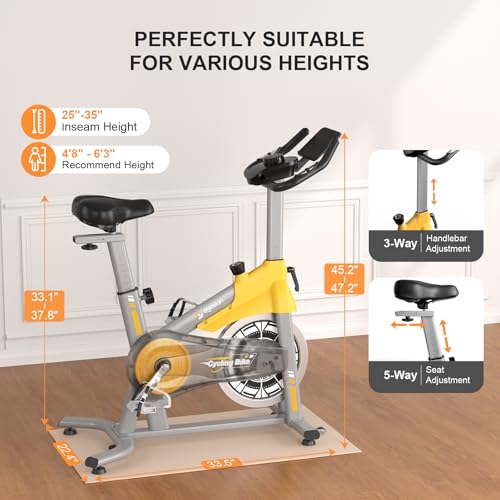 Exercise Bikes for Home,Spin Bike with Adjustable Magnetic,Brake Pad Resistance Silent Belt Drive,350lbs/300lbs Weight Capacity &Upgraded Version Seat for Home Cardio&Weight Loss(QM-530W)