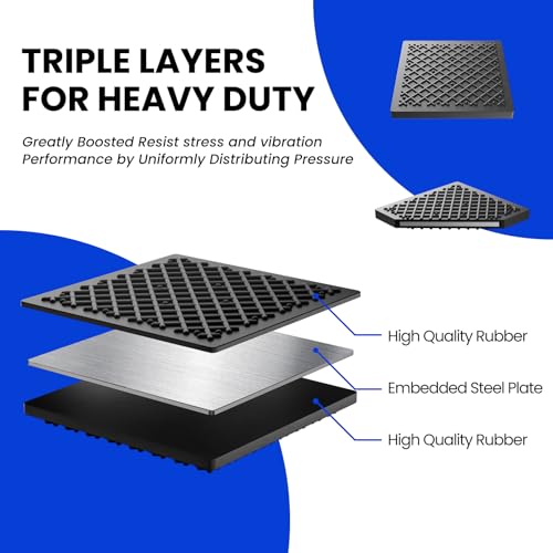 Exercise Equipment Mat 5.11×5.11×0.55in 4pcs, Heavy Duty Thick Steel Embedded Rubber Mat, Anti Slip/Noise Reduction/Vibration Resistance, Treadmills Equipment Pads, Used for Carpets, Wooden Floors