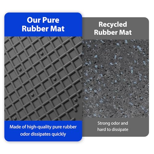 Exercise equipment mat size: 5.11×5.11×0.55 in, 4 pcs; Weight: 0.95 lb per pad; Material: Rubber with embedded steel plate; Weight bearing: 1000+ lbs per pad