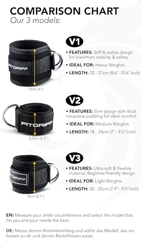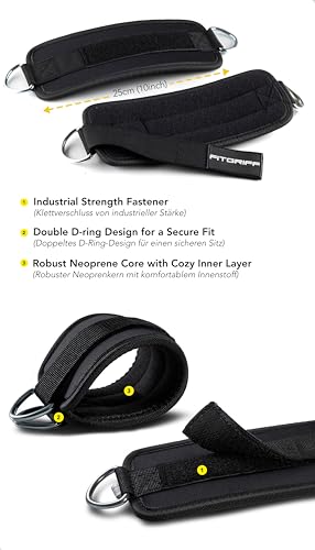 BUILT TO LAST – Crafted for durability, FITGRIFF’s Ankle Straps boast industrial-strength Velcro, reinforced seams, and premium construction. Their innovative design includes double D-rings to ensure an even distribution of weight, providing steadfast support through every rep and set.