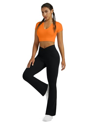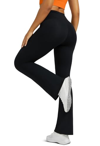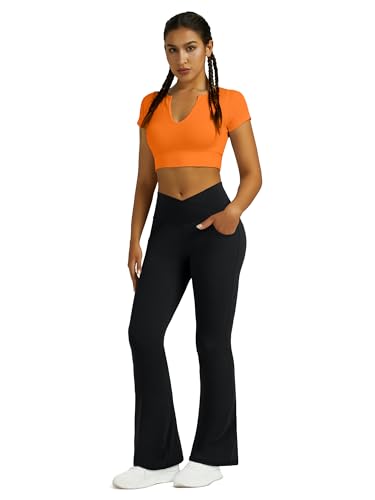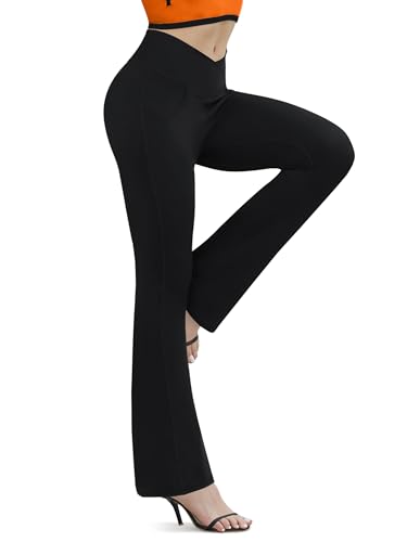 Flare Leggings for Women Yoga Pants with Pockets High Waisted Crossover Flare Leggings Bootcut Casual Yoga Pants
