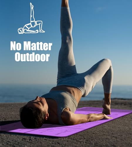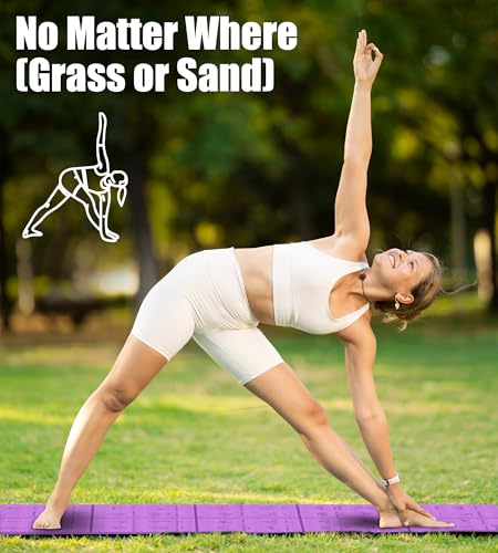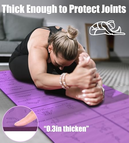 Foldable Thick Yoga Mat with Asanas Poses -Christmas Gifts for Wife and Girls, Non-slip 8mm Thicken Instructional Exercise Mat for Home Workout, 72″x24″x0.3″ (Purple)