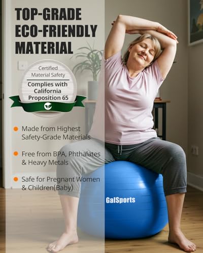 【High-Quality Materials】 Each of the Galsports yoga ball chiair has passed testing according to CA Prop 65 requirements, which means it does not contain any heavy metal like Pb and Cd, or 10 types of harmful phthalates. Therefore, by choosing the Galsports exercise ball, you are wisely choosing to protect the health and well-being of you and your family.