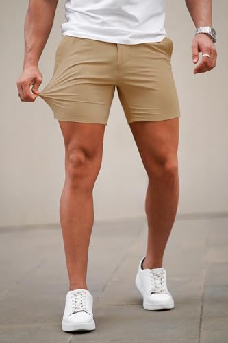 GINGTTO Mens Slim Fit Shorts Plaid Chino Short Tapered Leg Skinny Stretch