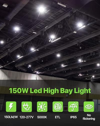 Powerful & Energy Efficient: Each 150W high bay delivers 22,500 lumens at 150 lumens per watt, providing bright and consistent illumination while cutting energy costs by up to 85% compared to traditional HID lighting